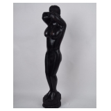| Hand Carved Wood Female Statue. Probably Ebony. |