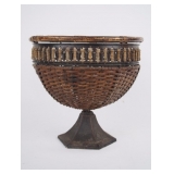 | Woven Basket on Metal Pedestal. |