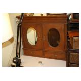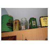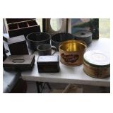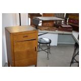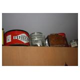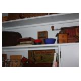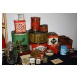 Vintage Wood Wall Spice Box Vintage GLASS Philco Battery Jar Vintage Frames and Wall Art 3 ~ RETRO BAR STOOLS Saleman's Sample ~ Hutch Vintage Display Case Loads of antique Nic Nacs Lamps , Bridge Lamps Fairy Lamp and Oil Lamp Collection Fort Wayne Memorabilia ~ Bunte ~ Fort Wayne Outfitters Co ~ Centrelever Advertising mugs Stain Glass Window Cigar Decanter Student Roll Top Desk Advertising Signs and TINS Galore! MANY Vintage to Fort Wayne ~ Berghoff Beer, Bunte, Centerlever , Wolf + Dessauer ~ PLUS Wee Willie Wand by Beatrice Printers Block Large to Small PRINTER Drawers FULL of Stuff! 3 Door Ice Box Interspace FRANCISCAN Discovery Dishes PYREX Blue Nesting Bowls Vintage Large Green Pyrex BOWL Griswold Cast Iron Skillet ~ Marietta 3 Gallon Kettle / Dutch Oven with Tin Lid Spatterware / Enamelware Grey and Blue Swirl Crocks ~ Small to Butter Churn VINTAGE Cast Iron BIRD / Parrot Bottle Opener Dental Cabinet 3/4 Jenny Lind Bed Christmas items Dolls in Cases 4 Bentwood Chairs Turn Leg Table with 2 Leaves and Pads Everyday dishes OLD Croquet Set Area Hooked Rugs Chid's WOOD Rocking Horse Kitchen Clock , Wall Clock Vintage WOOD Purses Raggedy Ann Primitive GREEN Barley Twisit Table Double Mirrored Cabinet MID CENTURY MODERN Tabouret Desk McChaskey Mfg. Office File Cabinet with TOP as Roll Top American Relief Poster 1918 Douglas Volk Artist Supplies Numerous Advertising WOOD Boxes Primitive wood bench Kitchen Utensils