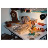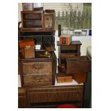 ANITQUES and PRIMITIVES FULL Brass Bed Dresser Dresser Chest Box Writing Desk Lamp Tables Drop Leaf Table Art Noveau Dresser Mirror Lady's Victorian Dresser Set Market Baskets and OTHERS Hiesey and American Fostoria Glass COINS Costume Jewelry Christmas Decorations Art Supplies