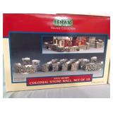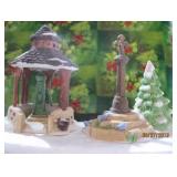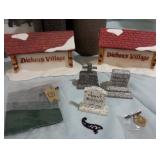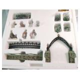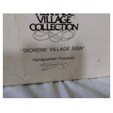 (3) Dickens' Village accessory pieces. "The House That Love Built" ornament, "Our Own Village Park Bench", "Dickens' Village Sign", and Lemax "Colonial Stone Wall" set. All in original boxes and excellent condition. |