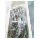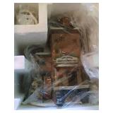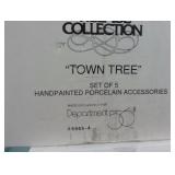 Dickens' Village accessory pieces. Includes "Town Tree", battery operated "Lighted Tree With Children and Ladder", and a box that has assorted pieces including some really nice marble signs for some of the houses, a clock, horse hitching rail, a statue of Charles Dickens (quill is broke as shown), a couple pieces of cobblestone, two Dickens Village signs (one broke as shown), etc. See photos. Trees are in original boxes and excellent condition. |