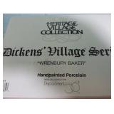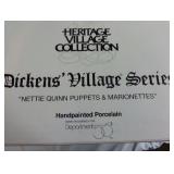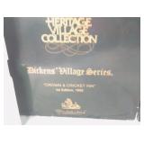(4) Dickens' Village accessory pieces. Includes "Town Clock", "Village Sign With Snowman", "The Old Puppeteer", and "The Flying Scot" Train".All in original boxes and excellent condition. |