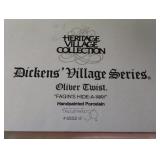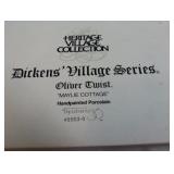Oliver Twist "Maylie Cottage" and "Dicken's Village Farm" set of two. Both in original boxes, one of the farm houses has a small spot on the edge of the roof and I can't tell for certain if it is a chip or a manufacturer defect. Otherwise, in excellent condition. |