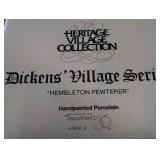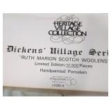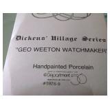 (4) Dickens' Village accessory pieces. "Seton Morris Spice Merchant" gift set is missing the snow and only has 1 tree, female "Village Collector" ornament, "The House That Love Built" ornament, and 4.75"W x 36"L Cobblestone length. All in original boxes and excellent condition. |