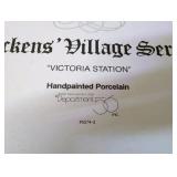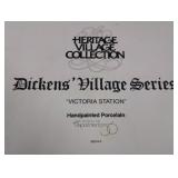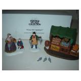 (4) Dickens' Village accessory pieces. "Portobello Road Peddlers", "Chelsea Market Fruit Monger and Cart", "Victoria Station Train Platform", and "The Spirit Of Giving". All in original boxes and excellent condition. |