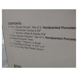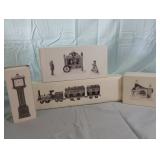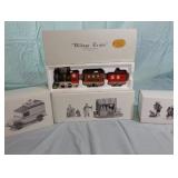 "Village Train" set of 3, "Village Express Van", "Poultry Market" set of 3, "Cobbler & Clock Peddler" set of . All in original boxes and in excellent condition. |
