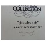 "Boulevard" 14 piece accessory set, "Chelsea Market Mistletoe Monger & Cart" set of 2, "Tending the New Calves" set of 3. All in original boxes in great condition. |