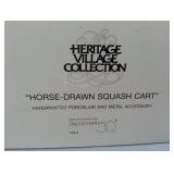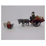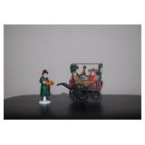(4) Dickens' Village accessory pieces. Includes "Horse-Drawn Squash Cart", "Chain Link Fence with Gate", "Chelsea Market Curiosities Monger and Cart", and (3) miscellaneous trees, the smallest of which is not Deptartment 56. All in original boxes and excellent condition except the trees are not in original box. |