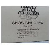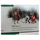 "Village Snowy Evergreens" set of 6 but 1 is missing, Department 56 "Sitting in Camden Park" set of 4, "Tending the Cold Flame" set of 3 and "Childs Play" set of 2. All in the original boxes and in excellent condition. |