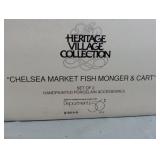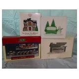 (4) Dickens' Village accessory pieces. Includes "The House That Love Built" ornament, "Chelsea Market Fruit Monger and Cart", "Chelsea Market Curiosities Monger and Cart", and "Autumn Trees" set of 3. All in original boxes and excellent condition. |