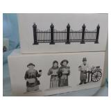 (4) Dickens' Village accessory pieces. Includes "Chain Link Fence With Gate", "Churchyard Gate and Fence", "The Bird Seller", and "Harvest Pumpkin Wagon". All in original boxes and excellent condition. |