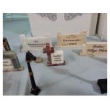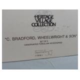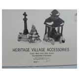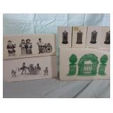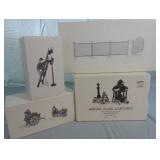 (4) Dickens' Village accessory pieces. Includes "Town Well and Holy Cross", "Chain Link Fence With Gate", "Lamplighter Accessory Set", and "C. Bradford, Wheelwright and Son". All in original boxes and excellent condition. |