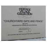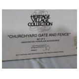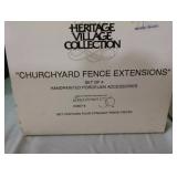 (4) Dickens' Village accessory pieces. Includes (2) "Churchyard Fence Extensions" with one being incomplete (see photos), "Heritage Village Farm Set", and "Thatchers". All in original boxes and excellent condition except as noted. |