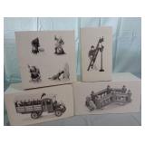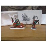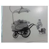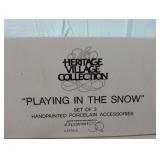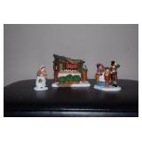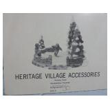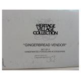 (4) Dickens' Village accessory pieces. Includes "Playing In The Snow", "Gingerbread Vendor", "Holiday Coach", and "Heritage Village Marquee Sign". All in original boxes and excellent condition except Marquee sign does not have box. |