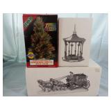 (2) Dickens' Village accessory pieces and a Lemax fibre optic shimmering spruce that would fit in with the collection. Includes "Town Square Gazebo", and "Royal Coach". All in original boxes and excellent condition. |