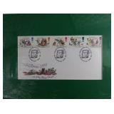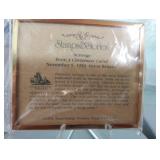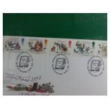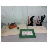 (2) Create-A-Base pieces measure about 15x24 and 10x16. Also includes a pair of Department 56 candlestick holders that are about 12"H, Royal Mail Service First Day Cover Christmas 1993: A Christmas Carol 9x12 matte collectible in original plastic and never opened, and a light up house in Department 56 style but no name brand found. |