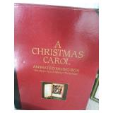 A Christmas Carol animated music box featuring "God Rest Ye Merry Gentlemen" in original box and good condition but the styrofoam has stuck to the cover as shown and cover is peeling at one corner. Also a Department 56, Goodwin Weavers, Dickens' Village, triple woven throw in original package and appears never opened. |