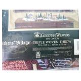 Department 56, Goodwin Weavers, Dickens' Village, triple woven throw in original package and appears never opened. Also a 1992 Heritage Village collection 12 month calendar that is still in original plastic and never opened. |