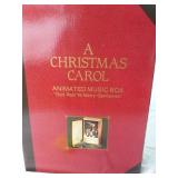 A Christmas Carol animated music box featuring "We Wish You A Merry Christmas" in original box and good condition but the styrofoam has stuck to the cover as shown. Also a Department 56, Goodwin Weavers, Dickens' Village, triple woven throw in original package and appears never opened. |