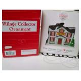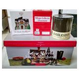 (3) Dickens' Village accessory pieces. "The Spirit Of Giving" start a tradition set is missing the snow and 1 tree, female "Village Collector" ornament, "The House That Love Built" ornament, and (5) Lemax Country Cove ornaments. All in original boxes/packaging and excellent condition. |