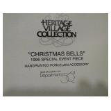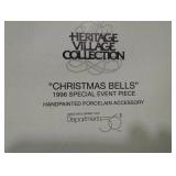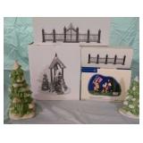 (5) Village accessory pieces. Includes (2) small pine trees (not in original box), "4th Of July Celebration" for The Original Snow Village, and (3) Dickens' Village pieces including "Village Wrought Iron Gate and Fence", "Village Wrought Iron Extensions", and "Christmas Bells" 1996 special event piece. All in original boxes unless noted and excellent condition. |