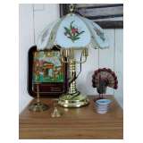 cabbage slicer, old marbles, oil lamps, tiffany style lamp, gone with