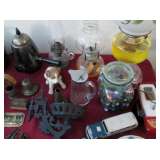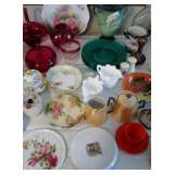 Glassware & Household - Nippon, Limoges, Roseville, Fostoria, Heisey, pink and green Depression glass, hall, old Pyrex, Swarovski, phoenix, silver-plate, copper, brass, trivet collection, cup and saucer collection, Norman Rockwell plates, Copenhagen plates, Dan Winter collection, Bombay accessories, aquarium, frames, mirrors, lamps, prints, watercolors, books, games puzzles, records, changing table, baby items, linens, clothes, Christmas, camping items, tools, lawn and garden. Specials