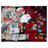 wind lamp, campaign pins, jewelry, sled, antique camp kitchen, radio