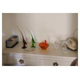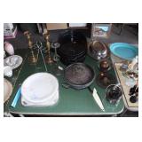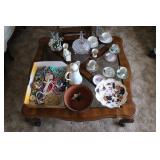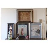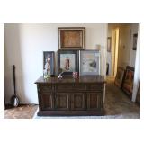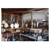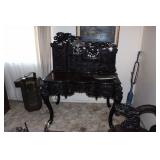 4 panels of Chinese 18th century doors, 19th century Chinese rosewood desk with carved dragon, Chinese dragon chair, Chinese snuff bottles, 50's chair by Mcquire, Victorian mahogany carved parlor set, very fancy large grandfather clock, crystal chandelier, mahogany dinning set with china cabinet, fancy bed room set, antique prints and etchings, antique and contemporary paintings, crystals, china sets, fine vintage clothing collection, records, vintage Barbies, lots of costume jewelry and watches, tools, and more. |