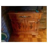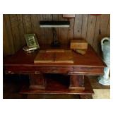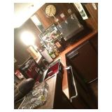 Furniture: Spinet mahogany desk Marble top mahogany credenza Pair Drexel crushed velvet arm chairs X-thick oval glass coffee table with mahogany base Beautiful stained glass floor lamp with brass base Tavern wingback floral chair Queen Anne style tea table with pull outs Tall mahogany fern stand Two tier metal tole painted table Mahogany small secretary with fitted interior and bookcase glass top Pulaski oval back arm chair Tapestry armchair Drexel Queen Anne style end table Chinese Chippendale child's high chair Floor lamp with glass table Jefferson Wood Working Co., Louisville KY, Queen Anne style dining room table with two leaves, 6 chairs, pads Bush large mahogany credenza 6 foot long mahogany serving table or hall table Plush swivel dressing room chair 2 white bar stools Vertie green metal round glass top patio table with four metal arm chairs Valley 8 ft pool table, many accessories- pool cues by Schen Ltd. Russ espinik, Axiom, extra set pool balls Garcia 3000 reel with rod & fishing tackle Kitchen Aide white washer and dryer pair- has an agitator Sligh Lowry leather top executive desk Mahogany eight drawer chest Dark brown leather sofa with matching love seat Gooseneck rocking chair Pair of wingback club chairs with an ottoman Ornate three panel folding fire screen, brass andirons Regulator wall clock by New England clock company Oak lift top storage stool Young Republic early American style cabinet Panasonic flat screen TV with a sound bar Mahogany three drawer Queen Anne style entry table Beveled gold rectangular mirror, needlepoint bell pull Twisted leg mahogany fern stand Best chair company club chair with large ottoman One drawer work table, wood oval framed mirror Pair of wingback leather dark burgundy chairs by Distinctive Leather Inc. Dark brown leather office chair Singer stylist sewing machine in nice wood cabinet Antique Gibson wood icebox with Gibson jar Dr Pepper's Mountain Herbs large oak wall clock Queen size bed with mattress and box springs Chippendale sofa Chippendale inlaid wood top center table Drew mahogany dresser, matching wall mirror Drew lingerie chest Small slant front desk Metal typing table, IBM electric type writer, ribbons Tell City table, 2 leaves, 6 rush bottom ladder back chairs Rustic handmade oak desk Handmade maple chop block island 2 drawer locking file cabinet Pair swivel bar stools Metal sling chair, leather directors chair White GE refrigerator, white side by side refrigerator Four beautiful antique apothecary cabinets from an old drugstore in Winchester, Kentucky