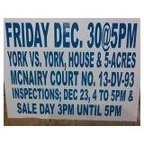 REAL ESTATE AUCTION FRIDAY DECEMBER 30 AT 5 PM YORK vs YORK Court Order No.13-DV-93