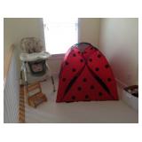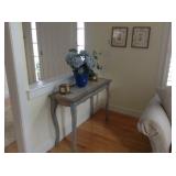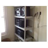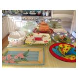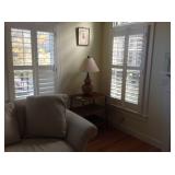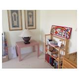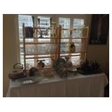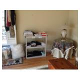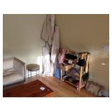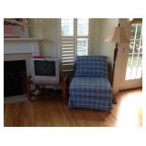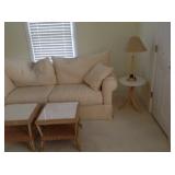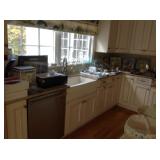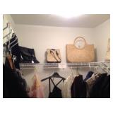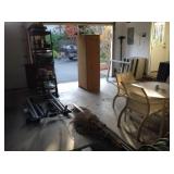Nice clean contemporary home including pair of upholstered sofas, mission style oak coffee table, distressed sofa table, upholstered chairs, table and floor lamps , TV with VCR, framed artwork, wicker end table, china and glassware including several separate serving pieces, silver plate, amoire, kitchenware/cookware, small appliances, stereo equipment, electronics, TV cabinet, loads of clothing, linens, formal ware men’s and women’s evening gowns and accessories, women’s sizes M/L, mens’ L coats, dresses, shoes etc., vintage beaded purse, Coach and Gucci small handbags, costume jewelry including watches, rugs, cedar chest, love seat, fine yarn cashmere, mohair and others, childrens’ toys, pup tent, desk, luggage, miscellaneous cabinets, tables, King bedding, table linens, full bed, small refrigerator, microwave, office supplies including shredder, desks, office chairs, garage and patio items, exercise equipment and much more.
