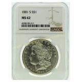 Over 300 pieces of quality jewelry, antique coins and currency will be sold in this fantasti auction! This auction is a simulcast, which means there will be live and online bidding. 1 1856 Type 3 Libety Head $1 Gold Piece Estate coin 2 1925 Choice BU Peace Silver Dollar Brilliant uncirculated 2 Oval 2.20 ct Morganite Designer Ring Rose gold over sterling silver. Size 8 3 $24,650 14kt Trillion Cut 1.95 ct VVS Diamond Ring AIGL Appraisal. Main gemstone is a natural brilliant trillion cut diamond weighing 1.37 carats. Color Grade: H. Clarity Grade: VVS2. Very rare opportunity to purchase a VVS diamond at auction! Absolutely gorgeous! 14kt white gold mounting featu... 4 18kt Gold Incredible Emerald & Diam. Cuff Bracelet 31 grams. Gems include round brilliant cut diamonds and natural emerald weighing approx. 1.00 carats. 4 Vintage Style 9.88 ct Ruby Tennis Bracelet Sterling silver 4 14kt Quality 1.50 ct VS Diamond Estate Ring Very HIGH QUALITY diamonds! One of the prettiest ring in the entire auction. Size 8.5 5 1853 Type 1 Liberty Head $1 Gold Piece Estate coin 6 18kt Gold Men's 3.55 ct VS Diamond Ring Super nice! 18.5 grams Round brilliant cut diamonds weighing 3.55 carats. Color Grade: E Clarity Grade: VS1-VS2. Size 12 6 Princess Cut 4.50 ct Tanzanite Designer Earrings Sterling silver 6 Kentucky Wildcats Stockman Knife Troublesome Creek 7 1873 "Open 3" Liberty $2.50 Gold Piece Estate coin 8 14kt Gold Emerald Cut 1.71 ct VVS Diamond Ring AIGL Appraisal. Main gemstone is a natural step emerald cut diamond weighing 1.15 carats. Color Grade: G. Clarity Grade: VVS1. Absolutely amazing high quality diamond! 14kt white gold mounting features 8 round brilliant cut diamonds weighing .56... 8 Princess Cut 3.00 ct Tanzanite Designer Pendant Sterling silver 8 Case XX Dr Red Large Trapper Knife Mint condition in box 9 14kt Gold Cushion Cut 1.72 ct Diamond Ring Main gemstone is a natural cushion cut diamond weighing .97 carats. Color Grade: H. Clarity Grade: SI1. 14kt white gold split shank mounting features round brilliant cut diamonds weighing .75 carats. Size 7 10 1991/95 WWII 50th Anniv. US Mint 3 pc Set 1/4 oz. Gold. 1 oz. Silver. 1/2 oz. Clad. This set has the box. 10 10 Men's Bulova 21 Jewel Automatic Watch With box, new condition. 11 Certified 1808 Admiral Gardner Shipwreck Recovery NGC Certified Shipwreck Recovery Coin 12 1873-S Sydney Young Head Gold Soverign Estate coin 12 Genuine 2.80 ct Emerald & Diamond Ring Sterling silver. Size 7 13 1923 BU Peace Silver Dollar Brilliant uncirculated 14 1887-O Morgan Silver Dollar Estate coin 14 Triple Stand 2.00 ct Diamond Tennis Bracelet 2.00 carat diamond weight 14 14kt Gold Antique London Blue Topaz Estate Ring Oval cut, natural London blue topaz weighing approx. 2.50 carats. Ring has 24kt gold layering over 14kt gold. Beautiful piece. Dark rich colors. Size 10 15 1995-P ERROR Broad Struck Jefferson Nickel Rare find! Error coin, broad struck on blank. 16 Cushion Cut 2.50 ct Emerald Designer Earrings Sterling silver 16 John Deere Large Trapper Knife Troublesome Creek 18 Ladies Oyster Date Rolex Watch Genuine Rolex watch in very good condition with silver dial. Watch is working and keeping accurate time. SN#14746## 18 Round 5.40 ct Australian Blue Opal Pendant Sterling silver 18 Boker Star Wars Trapper Knife Mint condition in box 19 1782 Silver 8 Reales *First American Silver Dollar With display case. 27 grams. Used during Revolutionary War and recognized as America's first silver dollar. It was accepted as legal tender until 1857 20 14kt Gold 1.00 ct Forever Us 2 Stone Diamond Ring Size 6. Very popular 2 stone design featured at Kay & Zales. $2,499 MSRP 20 Case XX Kentucky National Champions Knife Mint condition in box 20 Case XX White Bone Large Trapper Knife Mint condition in box 21 14kt Gold Brilliant .70 ct Diamond Solitaire Ring Maint gemstone is a natural diamond weighing .70 carats. H color. I1 clarity. Diamond has very nice luster and brilliancy. Size 9 22 14kt Gold Pear Cut 4.94 ct Ruby/Diamond Ring Main gemstone is a pear cut 4.67 carat synthetic pinkish red ruby. 14kt yellow gold mounting features round brilliant cut diamonds weighing .27 carats. Very pretty ring with beautiful color. Size 6.5 22 Genuine 4.51 ct Mystic Topaz & Diamond Ring Sterling silver. Size 8 24 14kt Gold Fancy Yellow Diamond Pendant Main gemstone is a fancy yellow diamond weighing .59 carats. 14kt white gold mounting features round brilliant cut white diamonds weighing .11 carats. 14kt white gold necklace included. 24 Emerald Cut 22.50 ct Blue Topaz Tennis Bracelet Sterling silver 24 18kt Gold 26.72 ct Alexandrite Earrings Very RARE find Alexandrite 25 14kt Gold Brilliant 1/2 ct Diamond Solitaire Ring Main gemstone is a round brilliant cut natural diamond weighing .50 carats. Color Grade: J. Clariity Grade: SI1. Diamond has exceptional brilliancy. Excellent cut. Very nice quality 14kt white gold mounting. Size 6 26 Brilliant 2.50 ct White Topaz Earrings Rose gold over sterling silver 26 Boker Cincinnati Reds Trapper Knife Mint condition in box 27 28 Kentucky Wildcats 4 Blade Congress Knife Troublesome Creek 29 Marquise Cut 3.00 ct White Topaz Estate Ring Sterling silver SIze 6 30 Valcambi Suisse 100 Gram Silver Bar 100 individual 30 Case XX Orange County Choppers Trapper Knife Mint condition in box 30 Case XX Skeleton Tiny Toothpick Knife Mint condition in box 31 RARE 1991 Rainbow Toned Certified American Eagle PCGS MS64 very rare rainbow toning 32 1913 St. Gaudens $20 Gold Piece *Rare Date Exceptional! Very rare find. 32 Antique Blue Lapis Estate Ring Sterling silver. Size 7.5 33 2006 US Mint One Ounce American Gold Buffalo Proof With original box and paperwork. Absolutely beautiful coin. 34 14kt Rose Gold 5.29 ct Morganite & Diamond Ring Main gemstone is an emerald cut natural pink morganite weighing 5.00 carats. 14kt rose gold mounting features round brilliant cut diamonds weighing .29 carats. Size 7 34 Vintage Genuine Turquoise Cuff Bracelet Sterling silver 34 10kt 