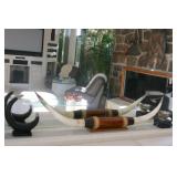 Contemporary home: · Natuzzi Leather Chairs · Epson Home Theater Projector · Contemporary Stools · Grand Baroque Sterling Flatware By Wallace · Tall African Sculptural Pieces · Interesting Chairs And Stools · Glass Dining Room Table · Pool Table · Exercise Equipment · Chandeliers · Epson Home Theater Projector
