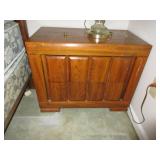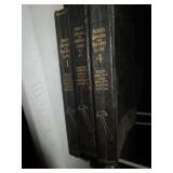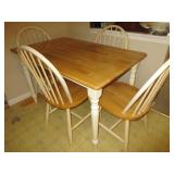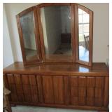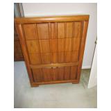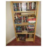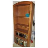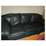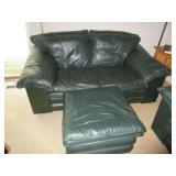 FURNITURE: Hunter green leather sofa, loveseat with ottoman, brown velour heat/message chair and ottoman, kitchen set with four chairs, mission style light oak coffee and end tables, several bookcases and shelves, Stanley twin bedroom set with headboard, night stand and 5 drawer dresser, Bassett queen bedroom set with headboard, 2 night stands, highboy dresser, dresser with mirror, rocking chair, dark green La-Z-Boy recliner, floor and table lamps.