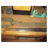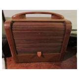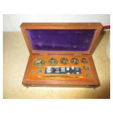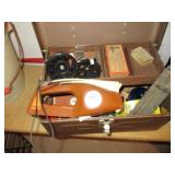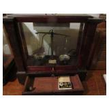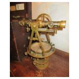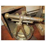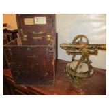 ANTIQUE TOOLS & INSTRUMENTS: W & L.E. Gurley surveyors / engineers transit with original wood box, T.F. Randolph transit / compass, Fisher Scientific apothecary scale, Eimer & Amend apothecary scale, antique Gurley wooden transit tripod, Old Philco radio Model 41 844