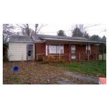 Approximately 1000 sq foot, 2 bedroom, one bath brick house with living room and dine-in kitchen. Also has enclosed carport workshop and a former store building on property.