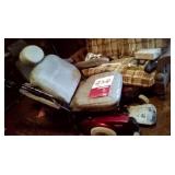 4′ counter to oak showcase — old cigarette racks — wood store shelves — wire metal store racks — key copy machine with lots of blank keys — locksmith tools and other small tools — vises — metal yard chair and glider — Lawn Boy mower mulcher — wooden bows and arrows — 2 electric mobile chairs — lift chair — pine bedroom suite — matching maple twin beds — Kenmore stack washer dryer — 3 gold class rings — Gold and diamonds woman’s ring — misc costume jewelry — vintage Shiney Brite ornaments — old Christmas lights — pink depression plate — sawhorses — shop worktable