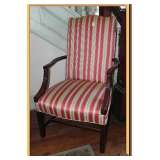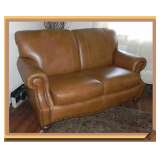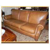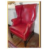 in the tent, two leather/brown sofas, two red leather wingchairs,