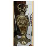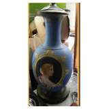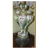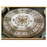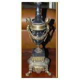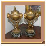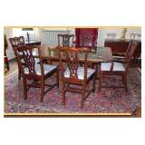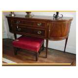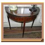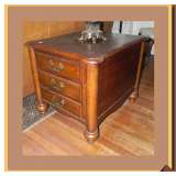 banded inlay double pedestal DR table on brass feet/casters, See pictures on Monday, March 18 in the afternoon |