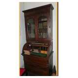 tables, cylinder rollback walnut Eastlake bookcase secretary in
