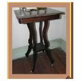 dropside mahogany table, two small marble top Victorian