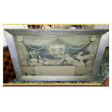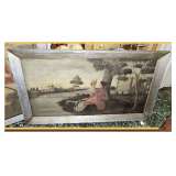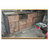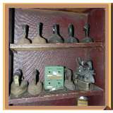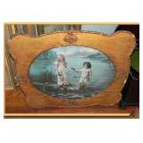 old pine backboards, unusual wooden/metal cook stove/warmer,