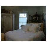 armoire, an antique brass bed, mesquite table, and an oak rocking chair.