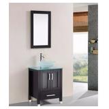 Belvedere Designs T9219 Bathroom Vanity Set with Raised Bowl Sink, 24", Espresso. This Belvedere bath T9219 is designed with a bold clean style and built with strong, top-notch materials. Constructed of zero-emissions solid oak wood with a classic Espresso finish that will last for years to come, this vanity offers abundant storage space, designer brushed nickel hardware and state-of-the-art technology. In Factory Carton with some damage Come to Preview to Inspect Retail $569.55 (RT121)
