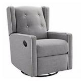 Baby Relax Mikayla Swivel Gliding Recliner, Gray Linen. Add the comfort of the Baby Relax Mikayla Swivel Gliding Recliner to your nursery room or living room and let the fun begin! The beautiful aesthetics of the design details and the exceptional comfort features will make this recliner an easy favorite! In Original Packaging Retail $339 (RT54)