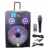 NYC Acoustics N15AR 15" 600w Rechargeable Powered Bluetooth Party Speaker with Mic. NYC Acoustics N15AR 15" 3-Way 600 Watt Rechargeable Active Speaker With Built In Bluetooth, MP3 display, USB, SD High power long-throw 15'' woofer with 2” KSV voice coil 15” Powered Bluetooth Speaker With 12V 7 AH rechargeable battery. In Previously Opened Carton. Retail $179.95