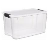 Sterilite 19889804 Storage Boxes,White Lid & Clear Base with Latches,70 Quart/66Liter,4-Pack. In Previously Opened Carton. Retail $37.07