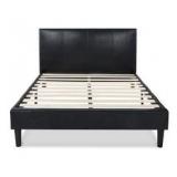 Zinus Deluxe Faux Leather Upholstered Platform Bed with Wooden Slats, King. This Deluxe Faux Leather Platform Bed features a headboard and low profile footboard style frame, with wood slats and exposed feet for support. Espresso colored faux leather for a luxurious look that makes an excellent addition to any bedroom. Appears to be New in Original Packaging. Please attend the Preview to see the item for yourself. Retail $242.42